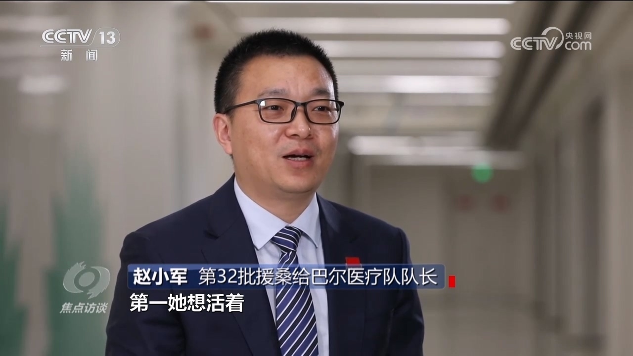 趙小軍:“當時,病人提了要求。第一,她想活著,因為她才是一個小孩的母親,她想生4到5個小孩,這是她的愿望。第二,她也知道這個手術(shù)很難,如果不難一年之前就已經(jīng)解決了,但是她非常信任中國醫(yī)生?!?/p>