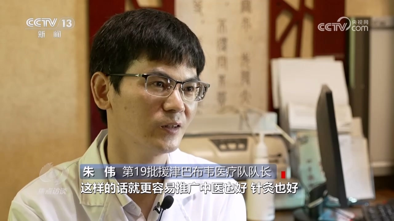 第19批援津巴布韋醫(yī)療隊隊長朱偉:“病人到60個的時候,工作強度太大了。后來我就慢慢給他們預(yù)約,培養(yǎng)當?shù)氐尼樉娜瞬?,這樣就更容易推廣中醫(yī)也好,針灸也好。去年,我在那里就培養(yǎng)了十個學員,他們自己能做。當?shù)匾彩强吹街嗅t(yī)針灸的效果,所以他們很多人想學。”