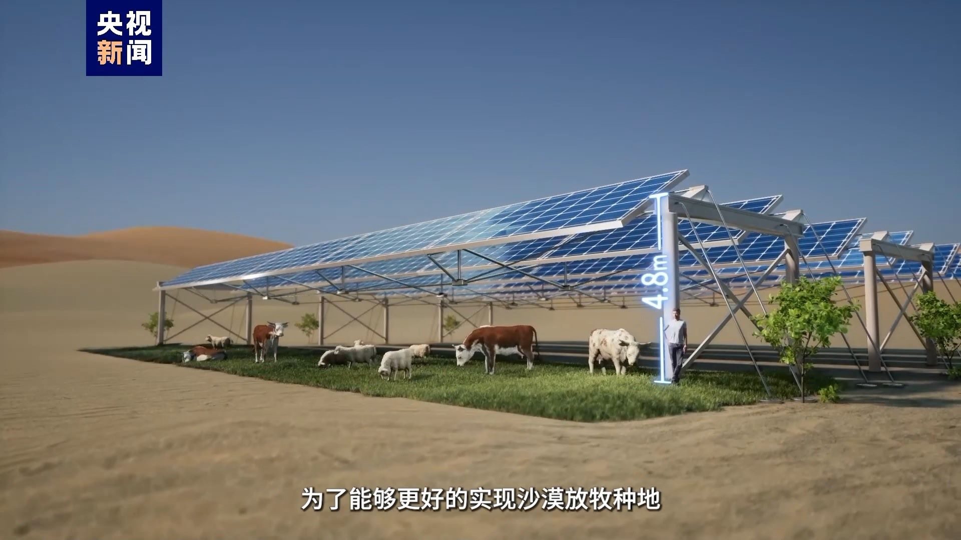 光伏板不僅能發(fā)電,還能遮擋一定的陽光照射,減少了下面土壤的水分蒸發(fā),為植物的生長提供了有利條件,為了能夠更好地實(shí)現(xiàn)沙漠放牧種地,會在建設(shè)前規(guī)劃光伏支架的高度和跨度,比如這里是燒烤區(qū)(牛羊放牧區(qū)),這里是沙拉區(qū)(蔬果種植區(qū)),這里是養(yǎng)生區(qū)(中藥種植區(qū)),接下來沙漠里還會有綠化帶區(qū),已經(jīng)安排上了。