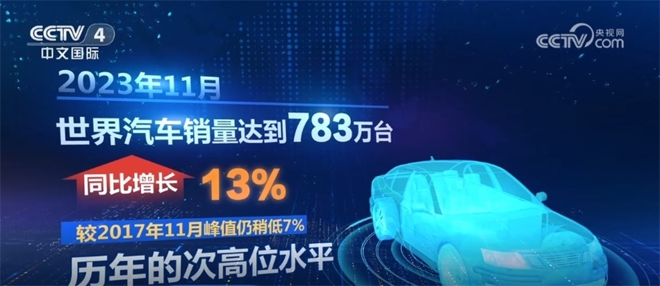 記者同時(shí)從全國乘用車市場信息聯(lián)席會(huì)了解到,2023年11月,世界汽車銷量達(dá)到783萬臺(tái),同比增長13%,較2017年11月峰值仍稍低7%,處歷年的次高位水平。其中,中國車企的銷量占世界份額38%,今年1—11月的累計(jì)份額達(dá)到33%。