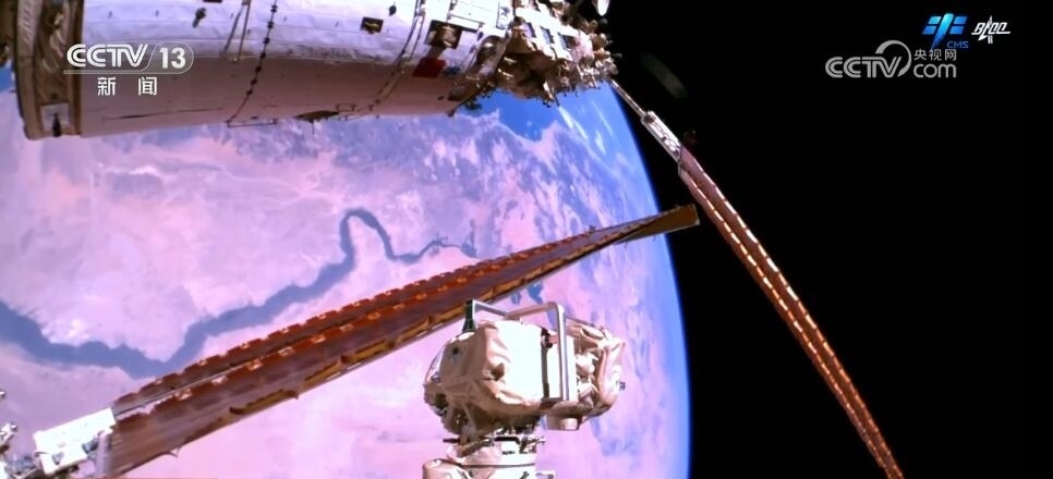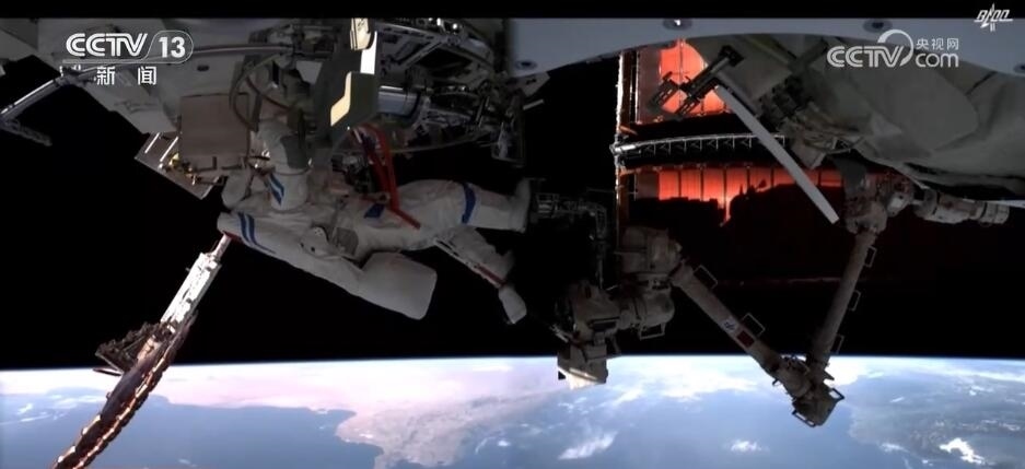 2023年10月26日19時(shí)34分,神舟十六號(hào)航天員乘組打開“家門”,歡迎神舟十七號(hào)航天員湯洪波、唐勝杰、江新林入駐“天宮”。兩個(gè)乘組在軌共同生活了約5天后,神舟十六號(hào)航天員在返回地球途中,還完成了此次飛行任務(wù)最后一項(xiàng)工作,首次拍攝了以地球?yàn)楸尘暗闹袊?guó)空間站全景高清照片。