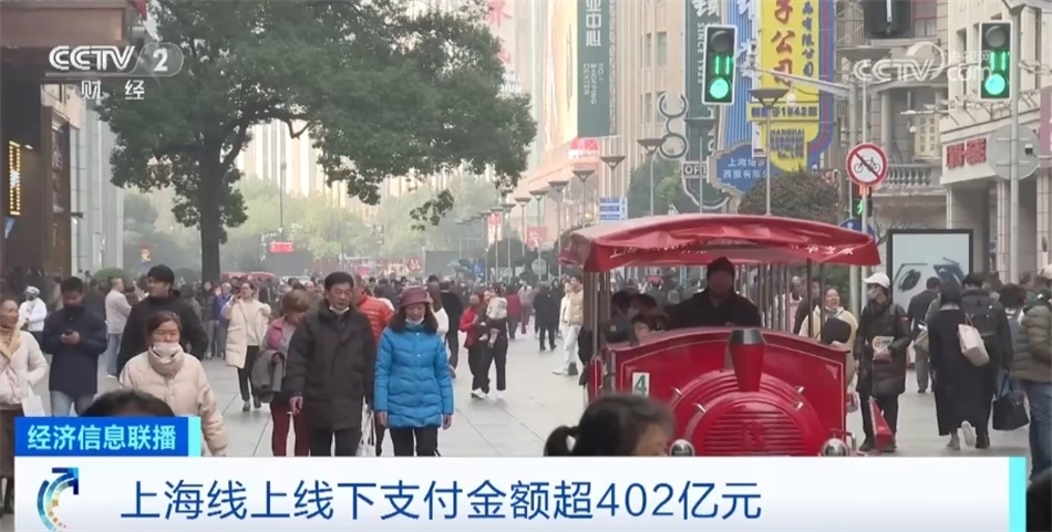 上海市商務(wù)委數(shù)據(jù)顯示,元旦假期期間,上海全市線下消費(fèi)支付金額255.6億元,比去年節(jié)日同期增長(zhǎng)38.7%,線上消費(fèi)支付金額147.1億元,比去年節(jié)日同期增長(zhǎng)7.8%。監(jiān)測(cè)上海全市35個(gè)重點(diǎn)商圈的線下客流總量超過了1500萬人次。