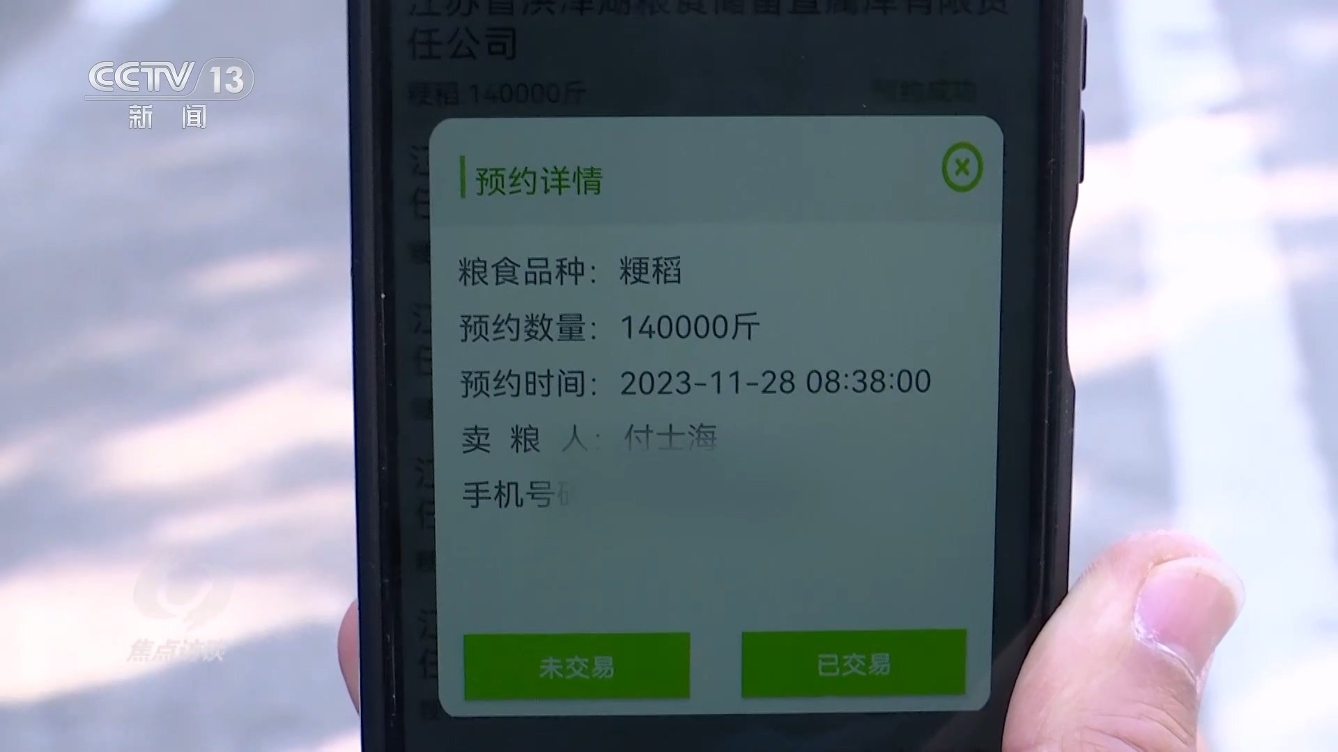 在江蘇省糧食部門(mén)研發(fā)的這個(gè)“滿意蘇糧”應(yīng)用程序里,不僅能夠?qū)崟r(shí)查詢收購(gòu)價(jià)格、糧庫(kù)倉(cāng)容狀態(tài),還能預(yù)約賣糧。通過(guò)手機(jī)看到這幾天的價(jià)格比較合適,付士海也準(zhǔn)備將自己的糧食出手了。