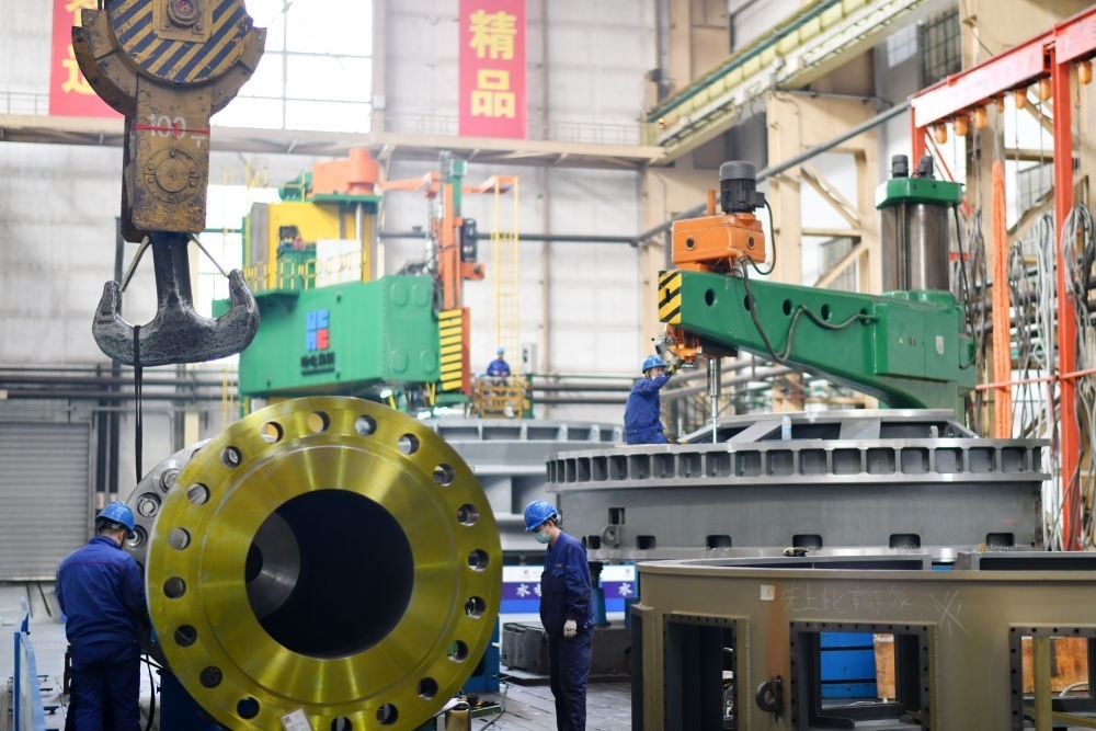 工人在哈電集團哈爾濱鍋爐廠有限責任公司生產(chǎn)車間作業(yè)(2023年4月12日攝)。新華社記者 王建威 攝
