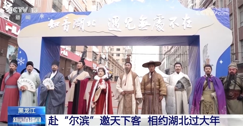 這些天,一群來(lái)自湖北的特殊游客抵達(dá)黑龍江哈爾濱,開啟他們的冰雪之旅。他們是湖北省文化和旅游廳組織扮演的“歷史名人天團(tuán)”,既有屈原、伯牙子期等,也有李白、蘇東坡等曾在湖北留下著名詩(shī)篇的文人。他們?cè)谥醒氪蠼志凼?,“拼”?shī)詞展音律,傳遞傳統(tǒng)文化之美。在暢享北國(guó)風(fēng)光的同時(shí),也為游客們送上一場(chǎng)超級(jí)文旅秀和文旅大禮包,邀請(qǐng)全國(guó)游客“去湖北過(guò)大年”。