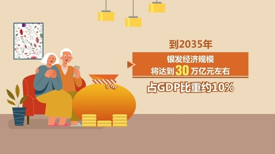 目前,我國銀發(fā)經(jīng)濟規(guī)模大概在7萬億元左右,占GDP比重大約為6%左右。到2035年,銀發(fā)經(jīng)濟規(guī)模將達到30萬億元左右,占GDP比重約10%。