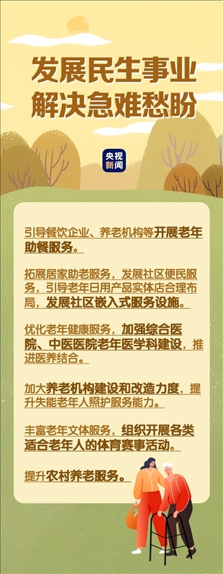 在民生事業(yè)方面,國家將擴大和發(fā)展七方面的服務(wù),包括養(yǎng)老助餐、居家助老、社區(qū)便民、老年健康、養(yǎng)老照護、老年文體、農(nóng)村養(yǎng)老等方面的服務(wù)。國務(wù)院辦公廳印發(fā)《關(guān)于發(fā)展銀發(fā)經(jīng)濟增進老年人福祉的意見》中提出了4個方面舉措,小編根據(jù)文件內(nèi)容進行了簡要梳理,一圖了解“銀發(fā)經(jīng)濟”核心要點。↓↓↓