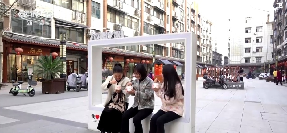 不僅如此,當(dāng)?shù)剡€對(duì)巷子的屋頂、外墻、地面等進(jìn)行升級(jí)改造。原來破舊的商業(yè)街改造后白墻黛瓦、古樸有致,并且融入了很多時(shí)尚的元素。用彩燈制成的當(dāng)?shù)鼐包c(diǎn)示意圖、主題雕塑、方言地標(biāo)休息區(qū)等受到年輕人的喜愛。環(huán)境好了,人氣也旺了,曾經(jīng)的“水巷子”徹底擺脫“水”的標(biāo)簽。