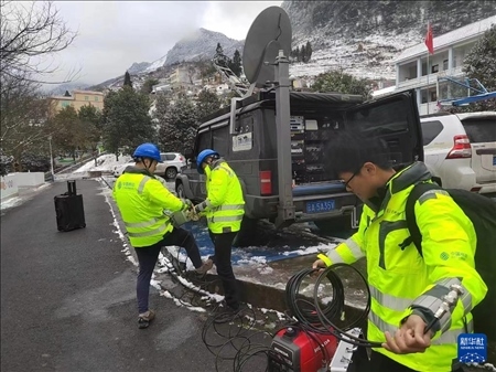 ?1月22日,工作人員在云南昭通市鎮(zhèn)雄縣山體滑坡災害現(xiàn)場附近開展工作,保障救援現(xiàn)場通信暢通。新華社發(fā)