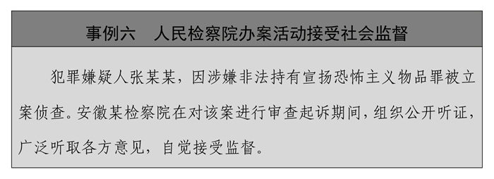——拓寬監(jiān)督渠道。中國執(zhí)法司法辦案機關持續(xù)拓寬監(jiān)督渠道,通過多種方式強化社會監(jiān)督,不斷增強執(zhí)法司法透明度,防止執(zhí)法權、司法權被濫用。人民法院通過審判流程信息公開、裁判文書公開、執(zhí)行信息公開、庭審公開等加大司法公開力度,及時公布法院審判、執(zhí)行工作情況。人民檢察院推行檢務公開,依法公開與檢察職權相關的活動和事項,并充分運用現(xiàn)代化信息手段,建立檢務公開信息平臺,設置電子顯示查詢設備,開通網(wǎng)站、網(wǎng)頁等,方便檢務信息查詢。公安機關推行警務活動公開,行政處罰遵循公開原則,執(zhí)法過程、處罰結果自覺接受社會和公民的監(jiān)督。司法行政機關推行獄務公開,將監(jiān)獄執(zhí)法工作的條件、程序、結果依法向社會公開,加強監(jiān)獄工作的規(guī)范化、制度化、法治化建設,規(guī)范執(zhí)法行為。