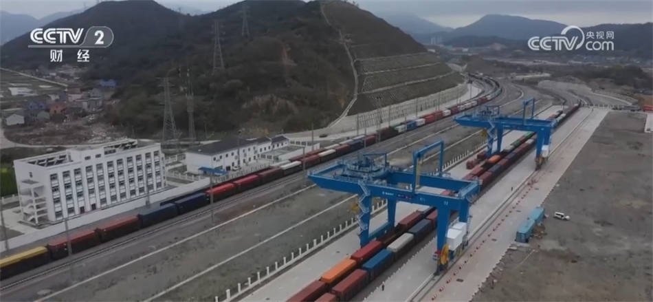 總臺(tái)央視記者 馬佳倫:這里是位于寧波舟山港北侖第一集裝箱碼頭的作業(yè)區(qū)。此刻一輛來(lái)自金華,載五十節(jié)車廂,共計(jì)100標(biāo)箱量的列車正在進(jìn)站。去年底甬金鐵路開(kāi)通運(yùn)營(yíng)以來(lái),寧波舟山港新增一條重要疏運(yùn)通道,世界第一大港寧波舟山港與世界小商品之都義烏(間)運(yùn)行效率大大提升。