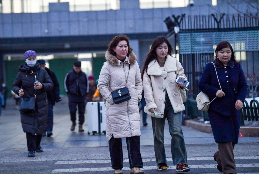 2024年1月15日,在新疆自貿(mào)試驗(yàn)區(qū)霍爾果斯片區(qū)的中哈霍爾果斯國際邊境合作中心,商人通過快捷通道進(jìn)入園區(qū)。新華社記者 趙戈 攝
