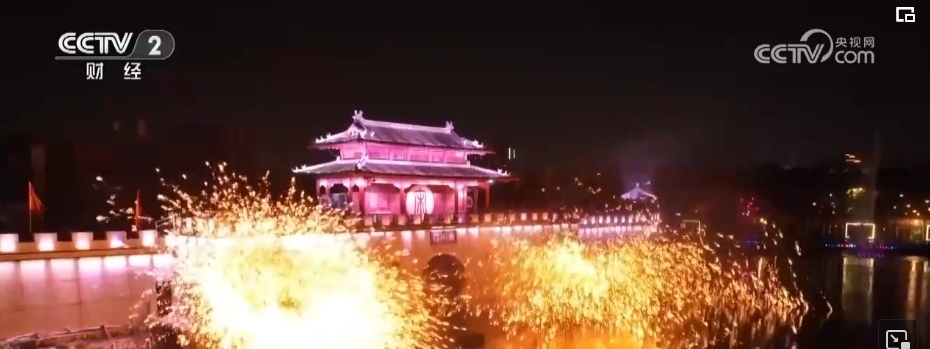 當夜幕降臨,八朝古都開封也在燈光的裝扮下流光溢彩。打鐵花是流傳于豫晉地區(qū)民間傳統(tǒng)的煙火,至今已傳承千余年。在清明上河園內(nèi),表演者先將鐵水舀起拋向空中,再用力擊打空中的鐵水,一時間鐵花飛濺、流星如瀑。園內(nèi),亭臺樓閣雕梁畫棟、虹橋清波舟船往來,大型實景水上演出再現(xiàn)了北宋汴梁的盛世繁榮。