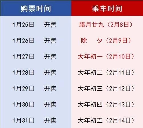 1月26日,2024年2月9日的除夕火車票將正式發(fā)售。2024年春運(yùn)自1月26日開始至3月5日結(jié)束,共40天。2024年春節(jié)假期從2月10日(初一)至2月17日(正月初八),共8天。根據(jù)目前鐵路客票提前15天預(yù)售的規(guī)則類推,1月27日開售2月10日(大年初一)火車票;2月3日開售2月17日(正月初八)火車票。