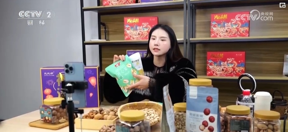 零食的線上銷售同樣增長明顯。在浙江臨安的一個直播基地內(nèi),主播們正輪番上陣推薦品類不一的堅果零食。