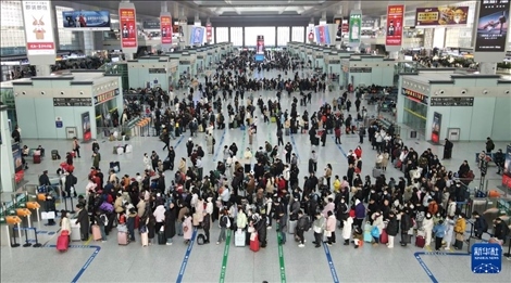 1月26日,旅客在合肥南站候車(無人機照片)。新華社記者 周牧 攝