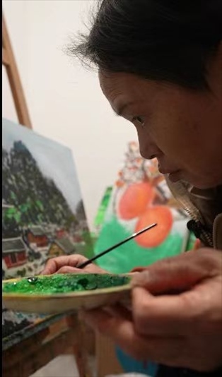 一支畫(huà)筆,一盒顏料,一張畫(huà)布,這幾乎是雙溪鎮(zhèn)能提供給王柳云的全部。那段時(shí)間,她走街串巷,畫(huà)山,畫(huà)水,畫(huà)民居,也“畫(huà)”心。憑著一種隱約的天賦和純天然的熱愛(ài),大概過(guò)了三個(gè)月,王柳云已經(jīng)能大批量地賣畫(huà)。