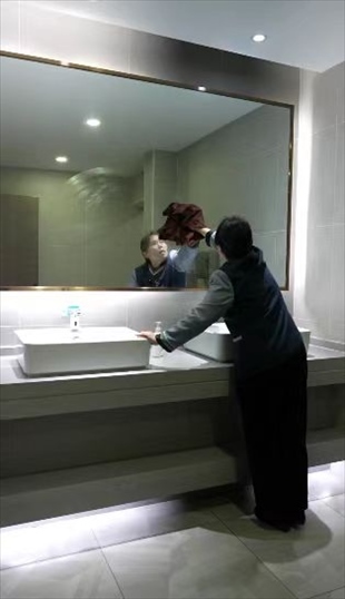 王柳云的保潔面積很大,整個(gè)寫(xiě)字樓的十五層和十七層,地板、桌椅、窗戶、衛(wèi)生間,都是她的職責(zé)范圍?!昂芏嗳艘婚_(kāi)完會(huì),杯子、椅子、桌子要清理,還有窗子全部要擦干凈”,她形容自己的工作量“三四個(gè)人都干不完”,但她看中了這份工作留給她的一隅,隨便找個(gè)角落就可以寫(xiě)字畫(huà)畫(huà)。