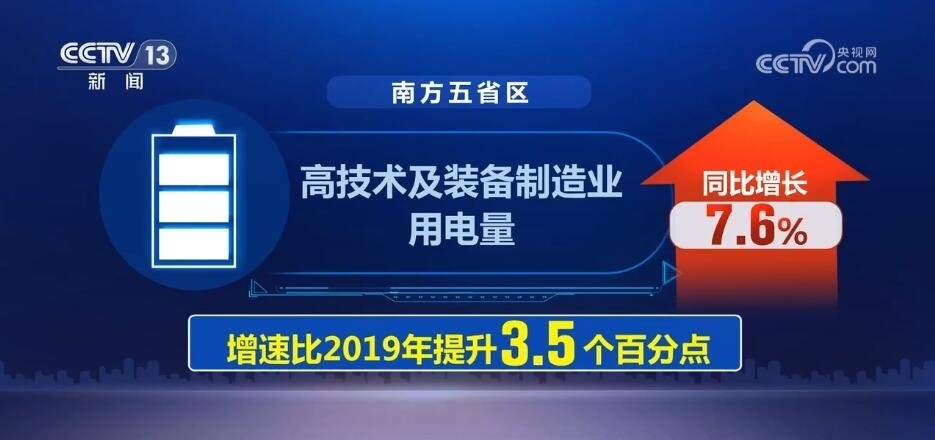 而在南方電網(wǎng)經(jīng)營區(qū)域內(nèi)的廣東、廣西等五省區(qū),高技術(shù)及裝備制造業(yè)用電量同比增長7.6%,增速比2019年提升3.5個(gè)百分點(diǎn),反映工業(yè)經(jīng)濟(jì)轉(zhuǎn)型升級態(tài)勢加快。