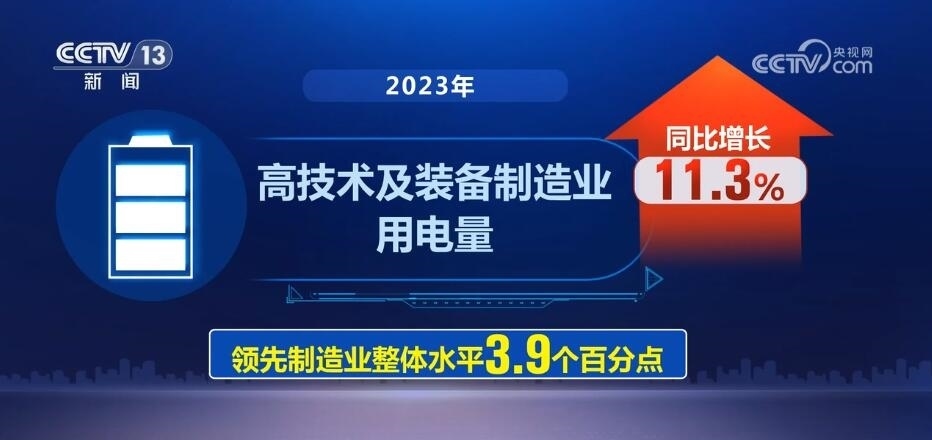 來自中國電力企業(yè)聯(lián)合會數(shù)據(jù)顯示,2023年,高技術(shù)及裝備制造業(yè)用電量同比增長11.3%,領(lǐng)先制造業(yè)整體水平3.9個(gè)百分點(diǎn)。