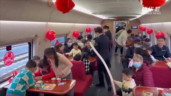 ·今年春運(yùn)期間,自廈門始發(fā)開往北京、上海、南京等方向的部分16節(jié)車廂“長編組”高鐵列車開設(shè)了“遛娃艙”,供帶娃家庭使用。