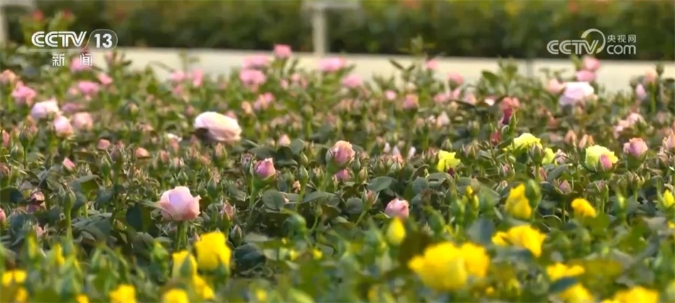 在江蘇阜寧這個(gè)智能溫室基地里,近80萬(wàn)株玫瑰花競(jìng)相綻放,花香四溢。工人們?cè)诎b車間內(nèi)忙著培土、剪枝、打包,將一盆盆玫瑰花發(fā)往全國(guó)各地。