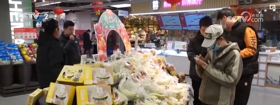 除了蘋果,各類葡萄、柑橘、車?yán)遄印⒉葺?、藍(lán)莓、菠蘿、榴蓮等水果也大量上市。僅記者采訪的這家生鮮超市,新奇特品種相比2023年,就有5%—10%的增長(zhǎng),春節(jié)前更是有100多款水果在店內(nèi)銷售,豐富了百姓的“果盤子”。