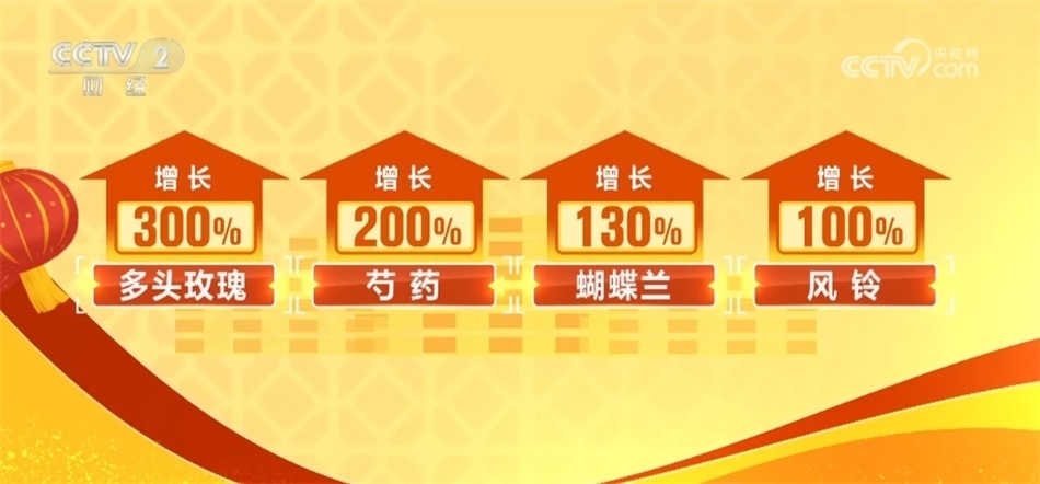 數據顯示,多頭玫瑰、芍藥、蝴蝶蘭、風鈴等鮮花銷售同比增長均超100%,而一些較為小眾的品類也成為春節(jié)期間的熱銷品。