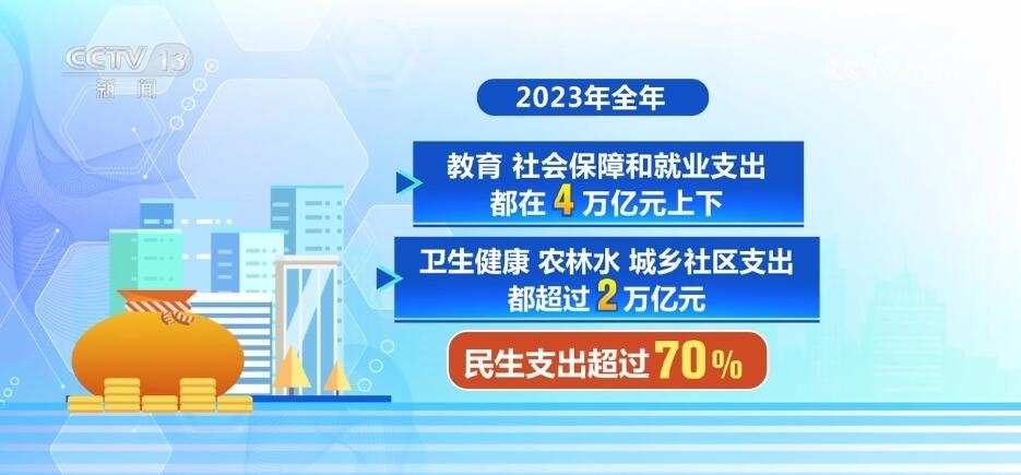 那么,2023年超過(guò)27萬(wàn)億元的錢都花到了哪些方面呢?根據(jù)最新公布的數(shù)據(jù),去年全年,教育、社會(huì)保障和就業(yè)支出都在4萬(wàn)億元上下,衛(wèi)生健康、農(nóng)林水、城鄉(xiāng)社區(qū)支出都超過(guò)了2萬(wàn)億元,粗粗算一下將近15萬(wàn)億元,也就是說(shuō),民生支出超過(guò)了70%。