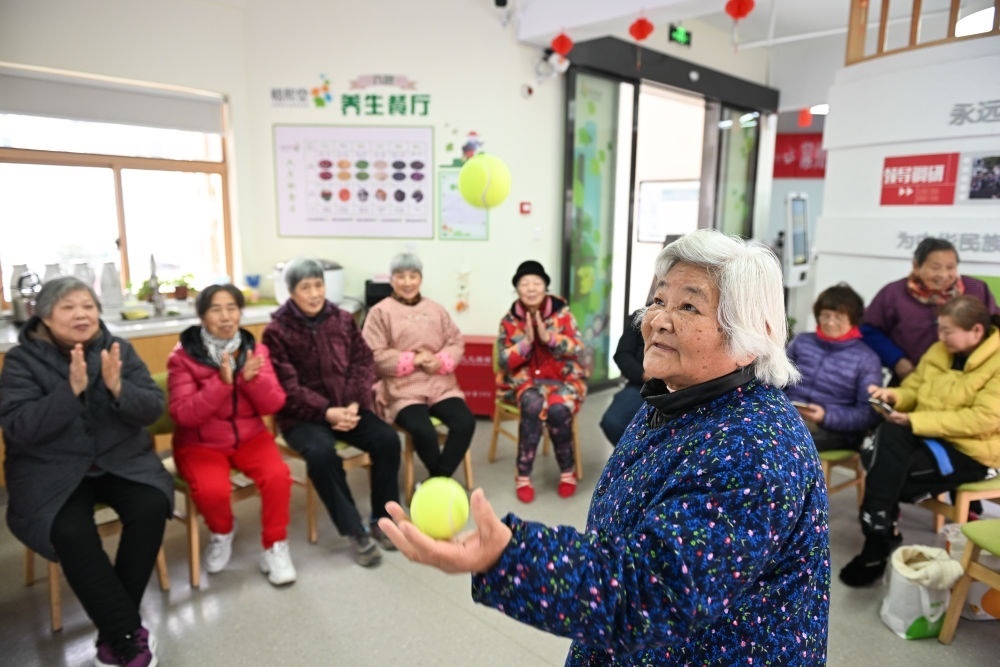 在江蘇省常州市天寧區(qū)茶山街道富強新村社區(qū)黨群服務(wù)中心,老人即興表演才藝(2024年1月9日攝)。常州市積極構(gòu)建15分鐘居家養(yǎng)老服務(wù)圈,建有鎮(zhèn)(街道)綜合性養(yǎng)老服務(wù)中心62家,實現(xiàn)街鎮(zhèn)全覆蓋。新華社記者 季春鵬 攝