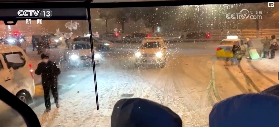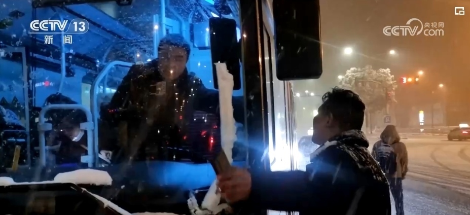 看到一些帶著小孩和老人的乘客沒能擠上車,站在風(fēng)雪中焦急等候,黃勁松和隊(duì)友們走上前,帶著他們前往公交站場,提前上車等候發(fā)班。凌晨1時10分,第二趟加班車從車場出發(fā)了。