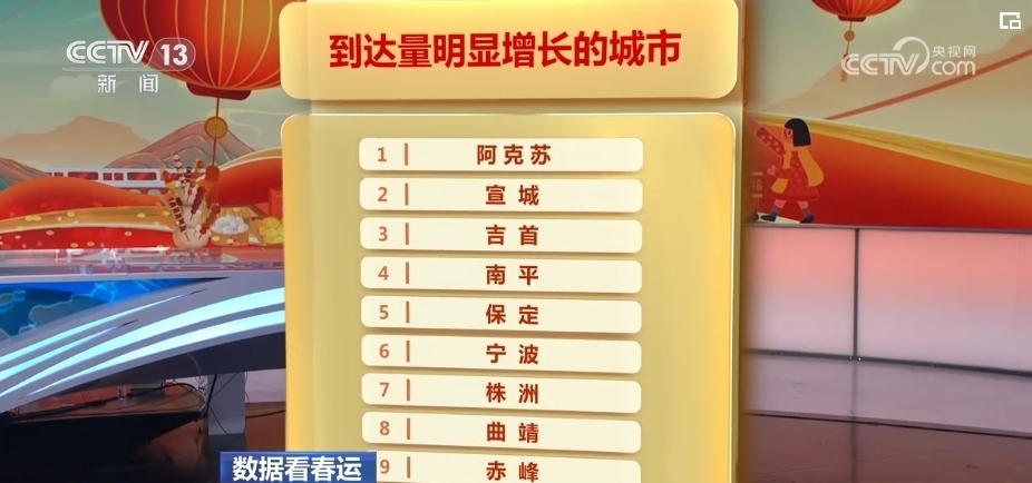 在2月7日的春運熱力圖上,最熱門的城市變化不大,根據12306的票務數據,預計2月7日將有48個城市的到達人次出現明顯增長。