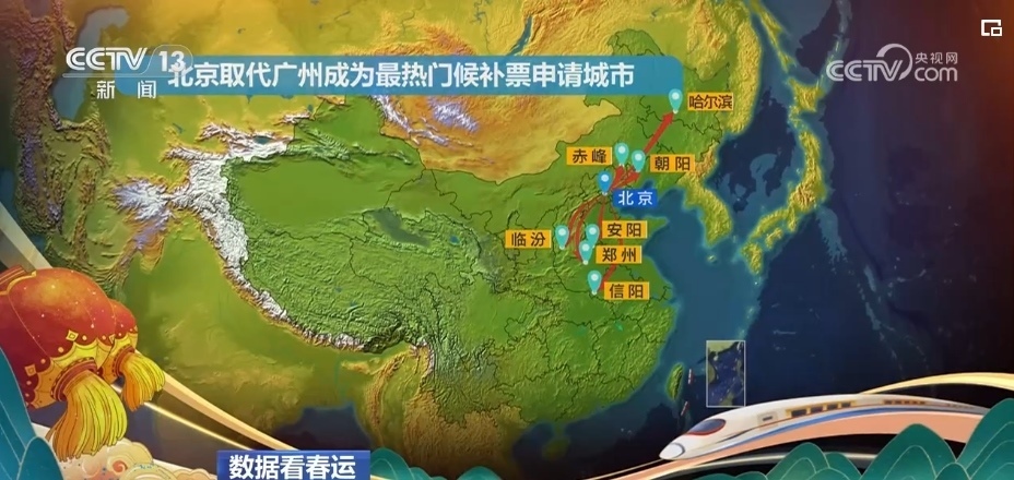 申請候補票的熱門路線2月7日出現新變化,北京取代廣州成為候補票申請最熱門的出發(fā)城市。從北京到朝陽、赤峰、哈爾濱、鄭州、臨汾、信陽、安陽這7個城市的候補票最為緊張。而從上海出發(fā)到鄭州、武漢、周口、商丘等中部城市的候補票也比較緊張。