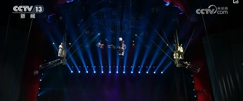 40多年來,春晚劇組首次在1號廳高空安裝飛人裝置,道具和技巧以及創(chuàng)意的融合,完美演繹了傳說中的魚躍龍門。