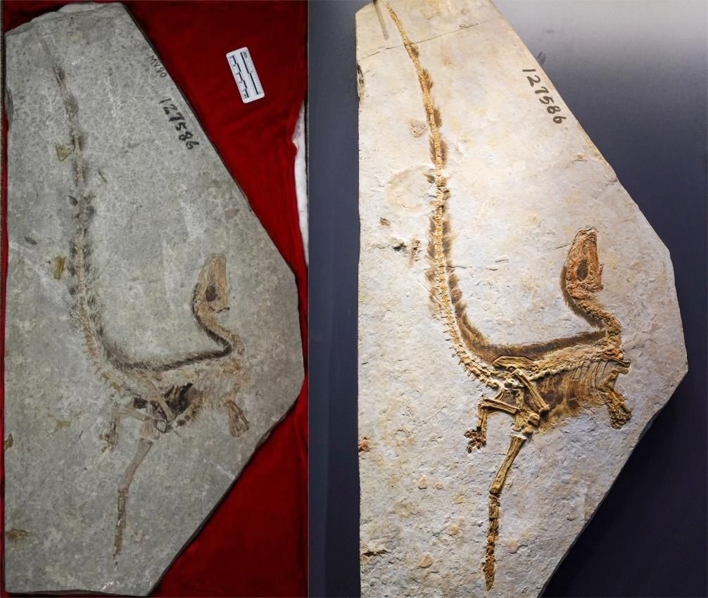 ·這只“明星恐龍”生活在距今1.25億年前,化石于1995年在我國(guó)遼寧被發(fā)現(xiàn)。中華龍鳥最令人震驚的是化石上保存完好的“羽毛”。這是人類第一次發(fā)現(xiàn)明確的帶羽毛的恐龍化石,最早的研究者們認(rèn)為這可能是一種長(zhǎng)相酷似恐龍的“鳥”,因此給它起名“原始中華龍鳥”。