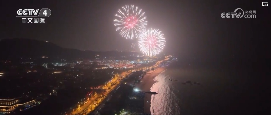 在最南端的三沙市,煙花秀、新春市集等活動,為祖國南疆點燃了春的氣息。永興島、趙述島等島礁上,軍民歡聚一堂慶新春。