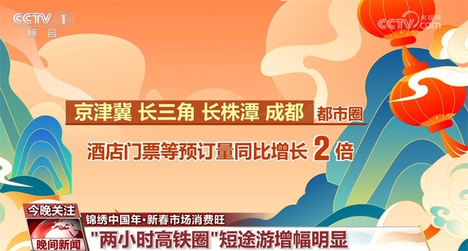 而在說走就走的短途游中,“兩小時(shí)高鐵圈”受到青睞。截至大年初一,春節(jié)假期“兩小時(shí)高鐵圈”短途游的搜索量同比增長(zhǎng)7倍。從實(shí)際預(yù)訂情況看,京津冀、長(zhǎng)三角、長(zhǎng)株潭、成都都市圈等區(qū)域的酒店、門票等相關(guān)旅游產(chǎn)品預(yù)訂量同比增長(zhǎng)2倍。