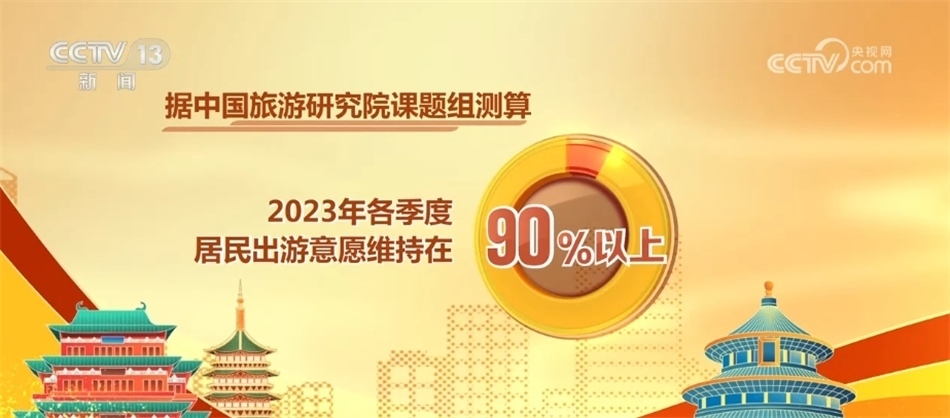 據中國旅游研究院課題組測算,2023年各季度居民出游意愿維持在90%以上。2023年全國游客滿意度綜合指數(shù)80.04,處于滿意水平,與2019年滿意度水平基本持平。