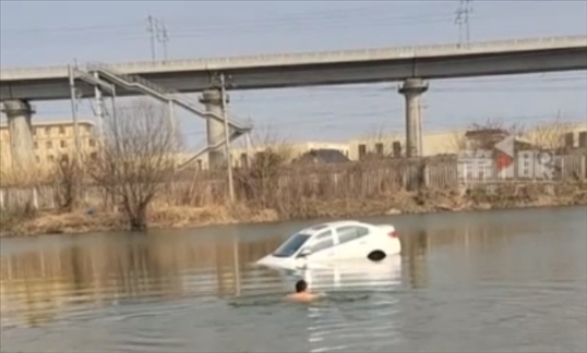 ·江蘇南通一釣友忘拉手剎,汽車滑下臺(tái)階墜入魚塘。