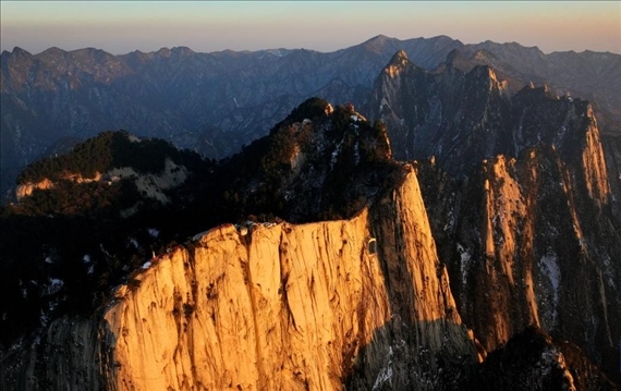 春節(jié)假期,西岳華山每天有超2萬人次的游客登山觀景。圖為日落時(shí)分的華山群峰。