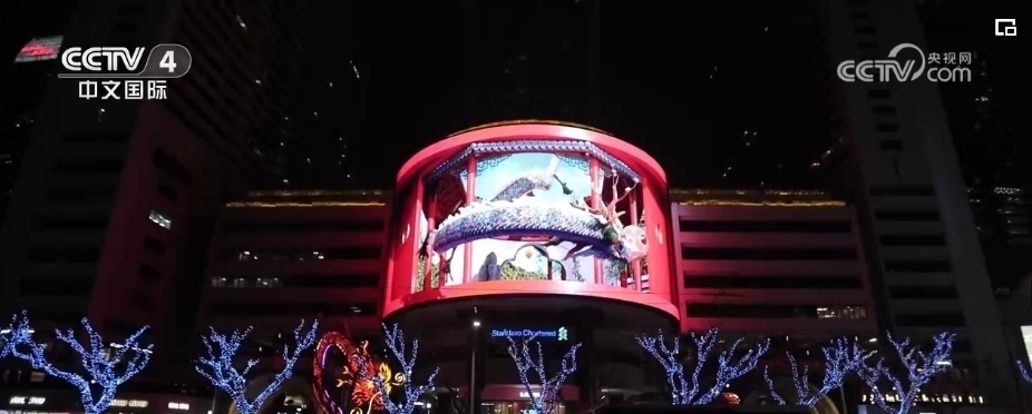 隨著夜幕降臨,在上海市南京西路這家商場戶外大屏,在裸眼3D技術的加持下,一條靈動時尚的“光影巨龍”騰飛而出。同時,上海南京西路商圈的多個地標建筑,也開啟了春節(jié)燈光演繹。