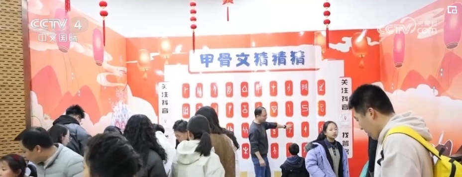 博物館內(nèi)的漢字展、漢服秀、甲骨文韻律操、文創(chuàng)集市等豐富多彩的節(jié)目,也給游客帶來了不一樣的新春體驗和感受。識讀甲骨文,能讓大家對漢字演變過程有更加直觀的認識和了解,在“甲骨文猜猜猜”游戲中,游客們認真觀察、思考展板上一個個甲骨文所對應的漢字,感受著古人的智慧和漢字的靈性與博大。