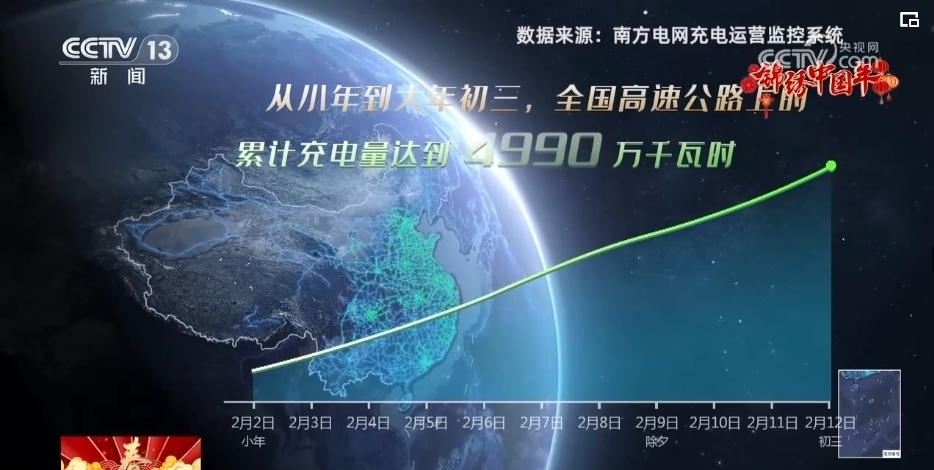這個(gè)春節(jié),人們駕駛著新能源汽車(chē),繪制出了一幅“綠色”的春節(jié)旅行軌跡圖。2.1萬(wàn)個(gè)充電樁遍布各地的高速公路,從小年到大年初三,全國(guó)高速公路上的累計(jì)充電量達(dá)到4990萬(wàn)千瓦時(shí)。