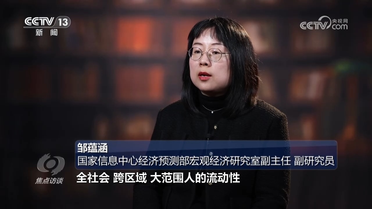 國家信息中心經(jīng)濟(jì)預(yù)測部宏觀經(jīng)濟(jì)研究室副主任、副研究員鄒蘊(yùn)涵:“今年春節(jié)的消費(fèi)可以總結(jié)為兩個(gè)字,一個(gè)是熱,一個(gè)是新。熱度體現(xiàn)在今年春節(jié)全社會(huì)跨區(qū)域大范圍人的流動(dòng)性較以往明顯增強(qiáng),整個(gè)社會(huì)動(dòng)起來了之后,推動(dòng)消費(fèi)市場的熱度活力。消費(fèi)領(lǐng)域的創(chuàng)新是一個(gè)非常突出的新的增長點(diǎn),這種創(chuàng)新不僅表現(xiàn)在傳統(tǒng)商品消費(fèi)的創(chuàng)新,服務(wù)消費(fèi)的業(yè)態(tài)模式創(chuàng)新,激發(fā)消費(fèi)意愿,推動(dòng)消費(fèi)市場潛力釋放具有非常好的作用。”? ?