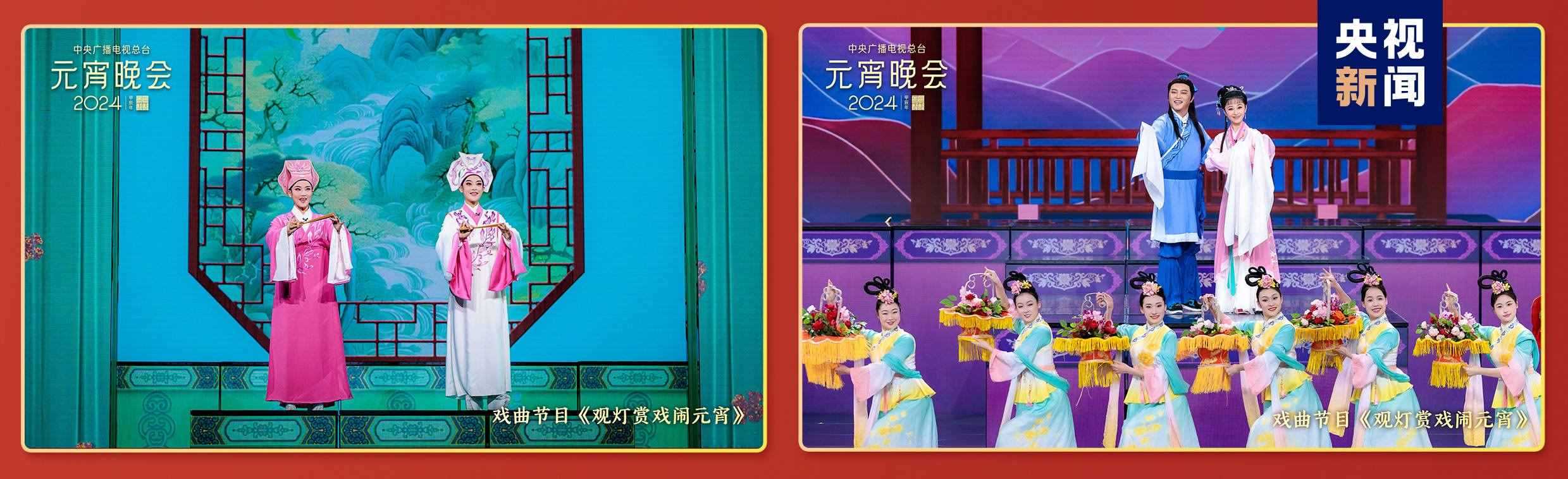 戲曲節(jié)目中,伴隨著“火樹千春妍,元夕月正圓,歡歌笑語喧”的戲腔戲韻,閩劇戲歌首次亮相總臺元宵晚會。其他劇種還玩上了跨界表演,熟悉的旋律響起,站在舞臺上的表演者卻是令人直呼意外的“混搭”組合。陳麗君與黃齡攜手帶來越劇《梁?!愤x段,潘檸靜與沙溢共唱黃梅戲《天仙配》,在上元之夜演繹傳世愛情故事,“戲曲真的出圈了”“誰說年輕人不聽?wèi)?,永遠(yuǎn)為經(jīng)典唱段打call”。