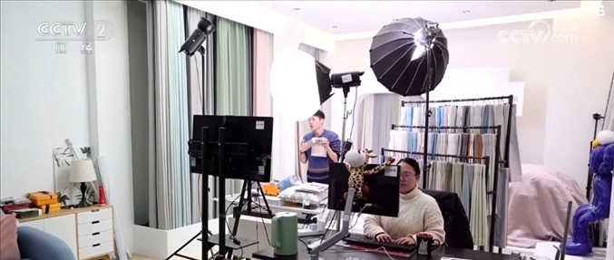 在當?shù)亓硪患移髽I(yè)的直播間內(nèi),主播們正在嫻熟地介紹公司的窗簾產(chǎn)品。近年來,公司發(fā)力網(wǎng)絡(luò)直播業(yè)務(wù),線上訂單逐年增長,目前已經(jīng)占到了公司整體銷售額約65%。