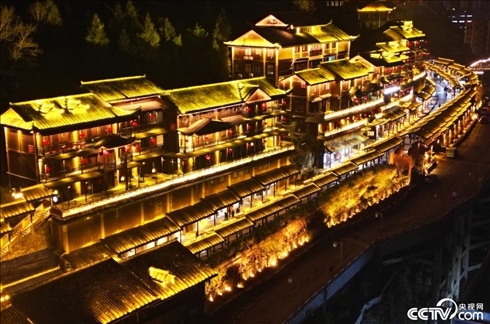 重慶酉陽(yáng),酉州古城夜景璀璨美如畫(huà)。