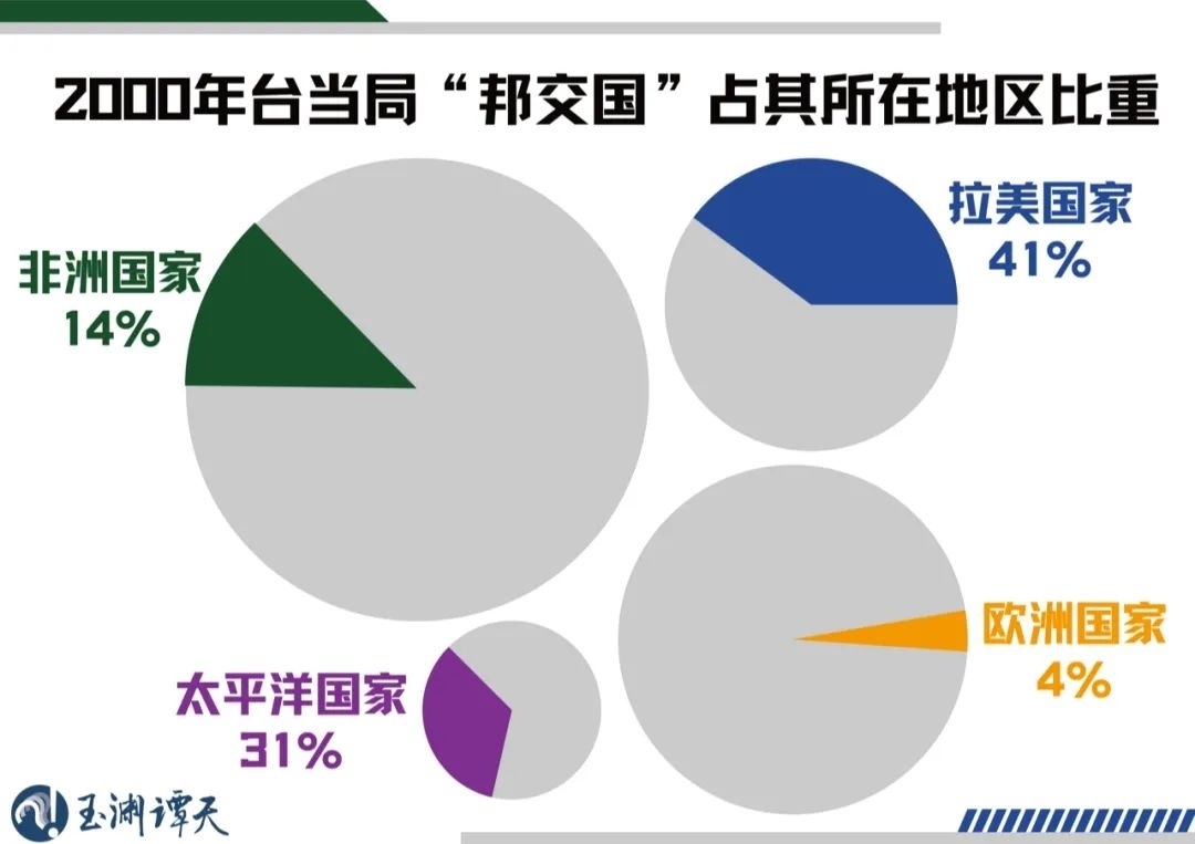 在2000年,臺灣當局的“邦交國”僅覆蓋拉美、非洲、太平洋和歐洲四個區(qū)域。