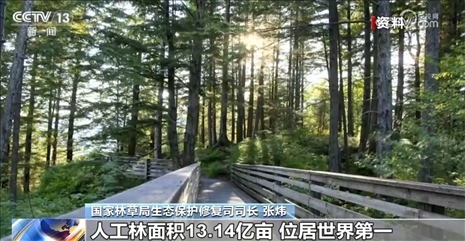 國(guó)家林草局生態(tài)保護(hù)修復(fù)司司長(zhǎng)張煒表示,黨的十八大以來(lái),全國(guó)上下共同努力,累計(jì)完成國(guó)土綠化任務(wù)16.8億畝,全國(guó)森林面積、森林蓄積量連續(xù)多年保持“雙增長(zhǎng)”,人工林面積13.14億畝,位居世界第一。