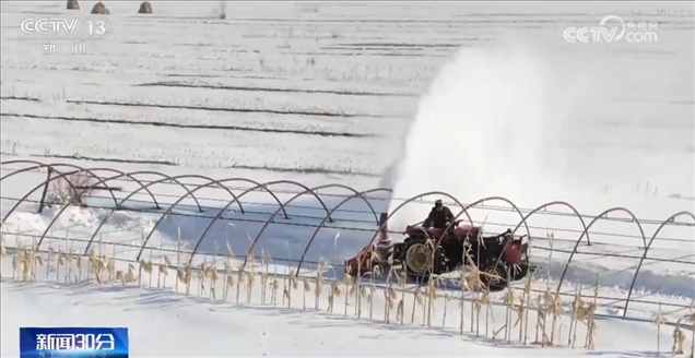 在黑龍江哈爾濱市延壽縣,種植戶(hù)正在搶抓天氣回暖有利時(shí)機(jī)開(kāi)展清雪扣棚工作。